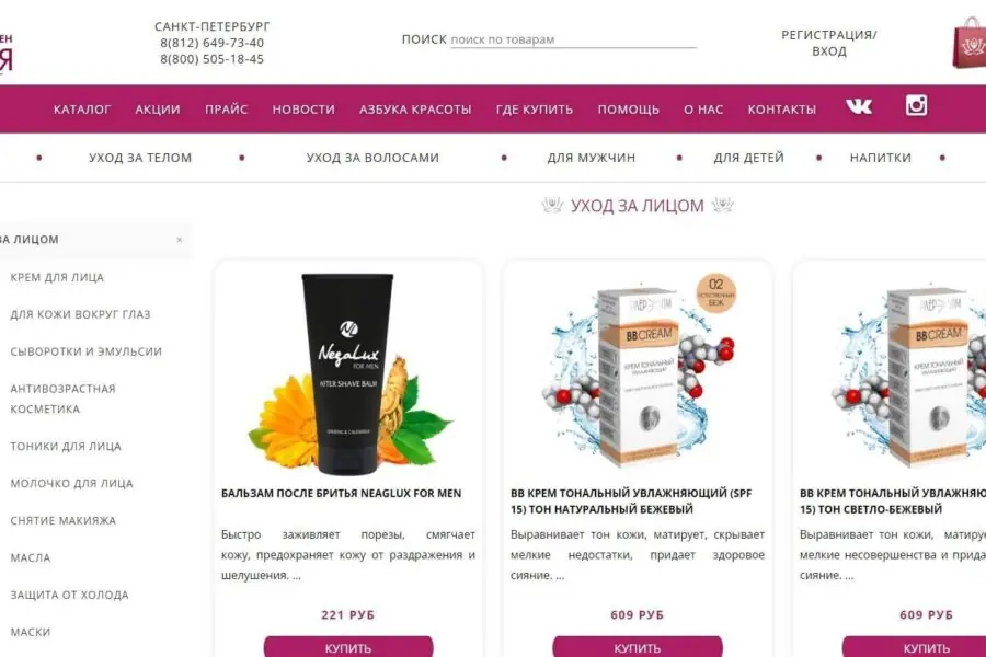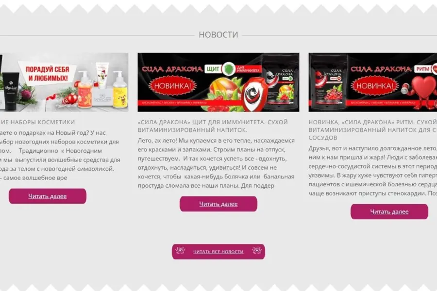 Project from a cycle of sites for manufacturers of dietary supplements from St. Petersburg.