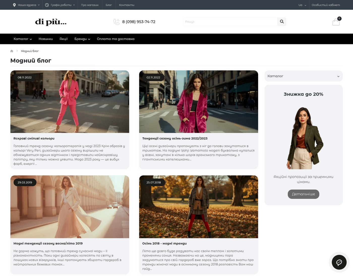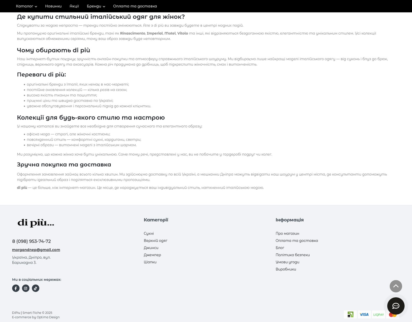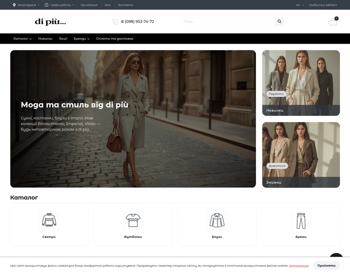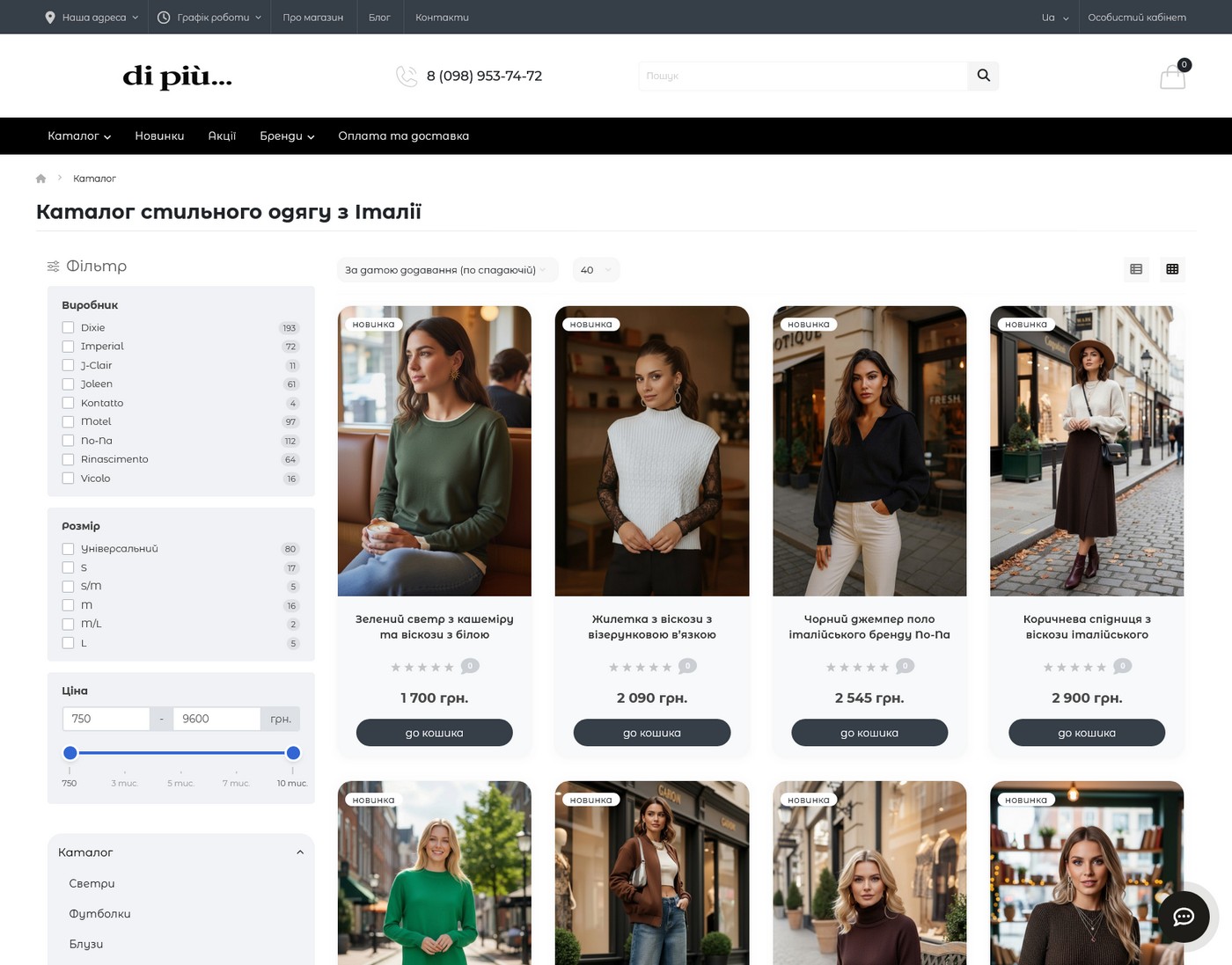 The owner of the Di Piu boutique, which sells clothes of Italian brands Rinascimento, Dixie and others, needed the ability to sell not only offline, but also online.