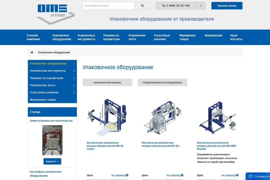 Creation of an online catalog for a packaging equipment supplier OMS S.p.A.