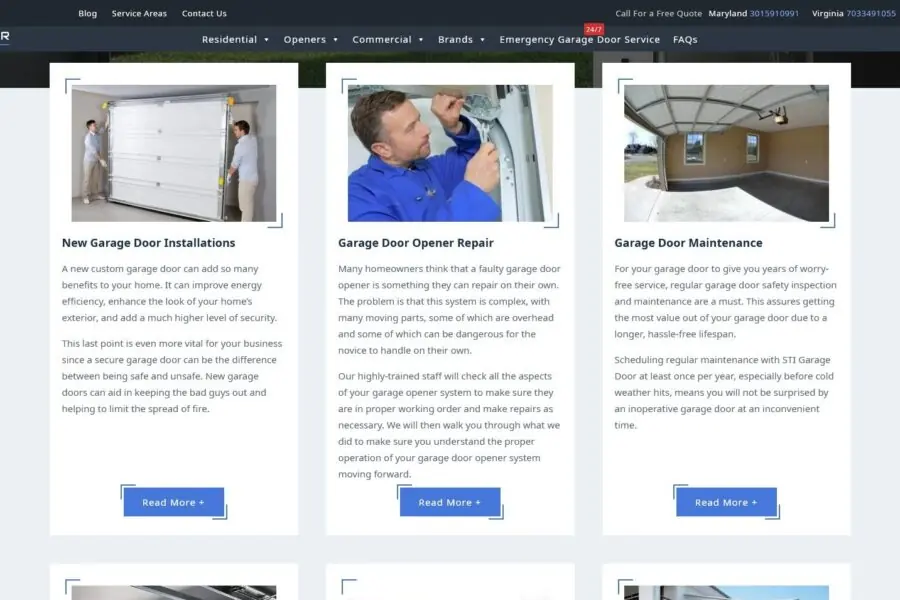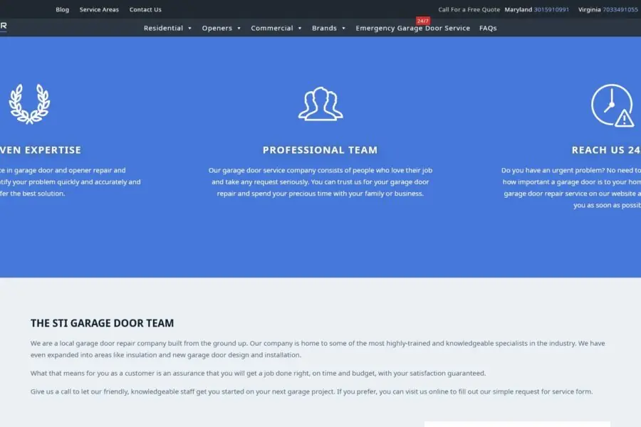 STI Garage Door is a multi-location garage door service company operating across several US states. Our collaboration started in 2017 and continues as a long-term partnership focused on SEO-driven website development.