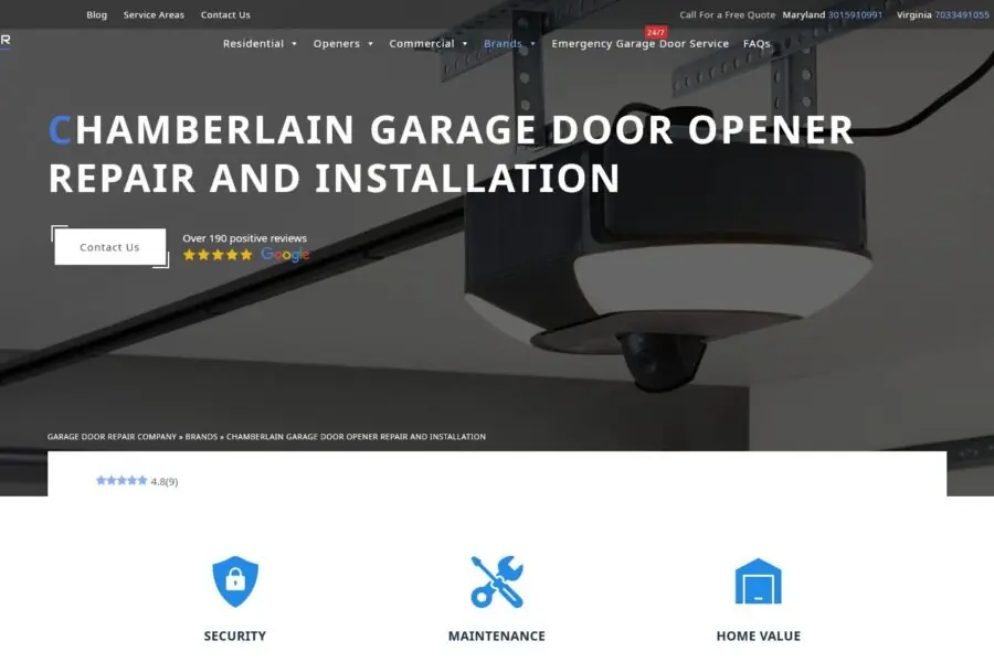 - Brand-specific pages for garage door manufacturers and motors