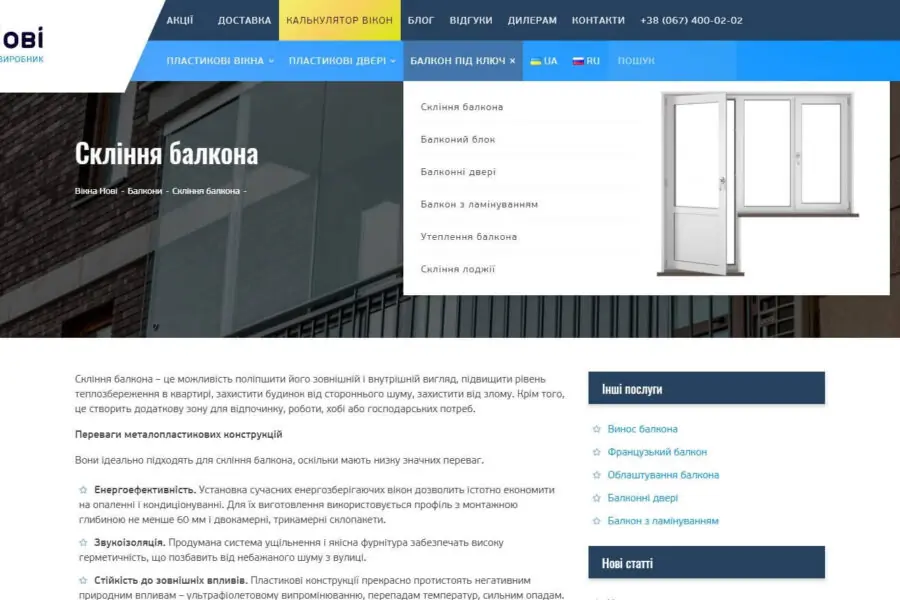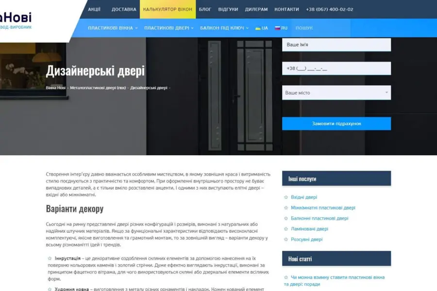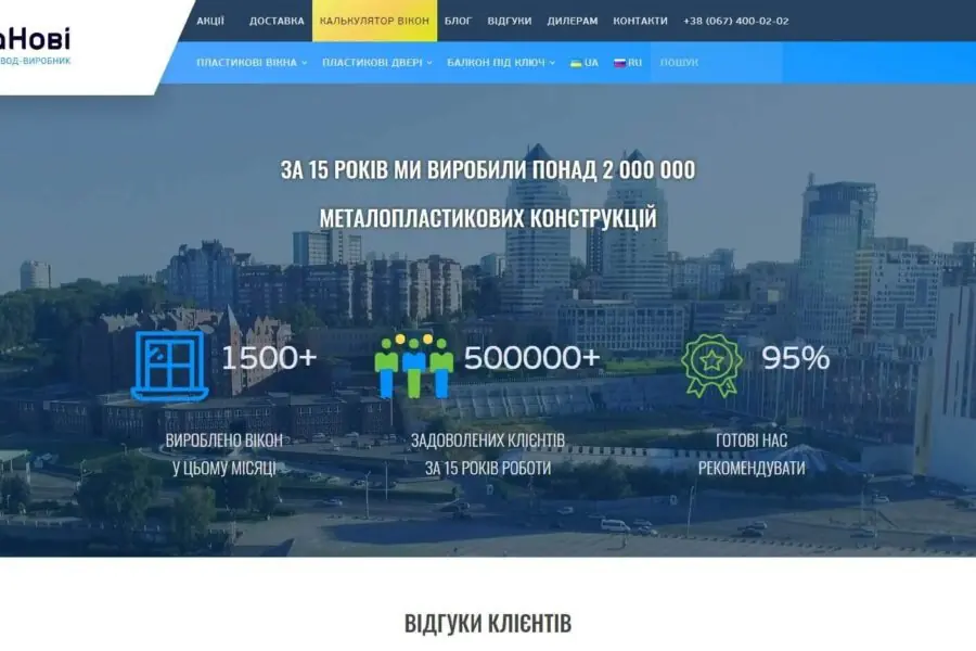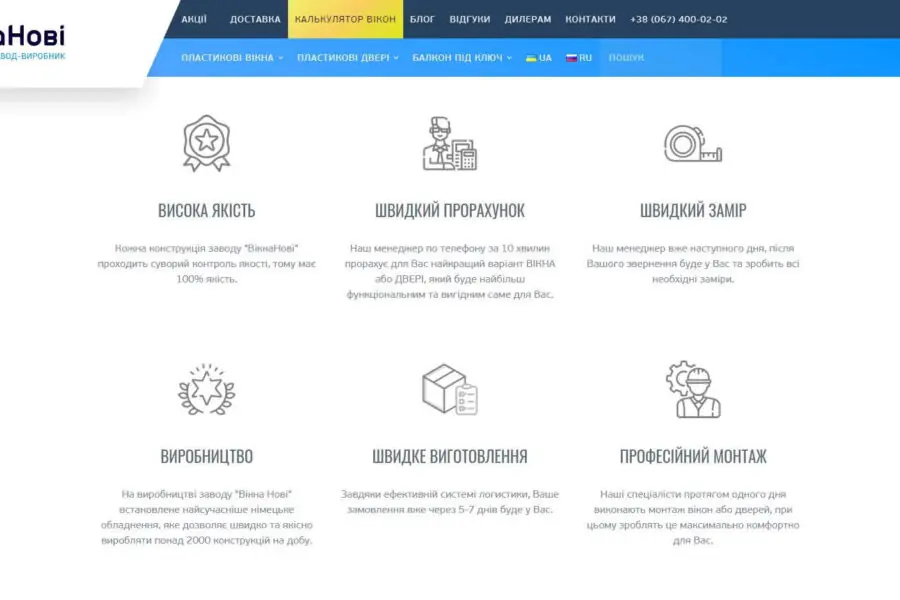 Website development for the Ukrainian manufacturer of PVC windows and doors – the company VіknaNovі.
